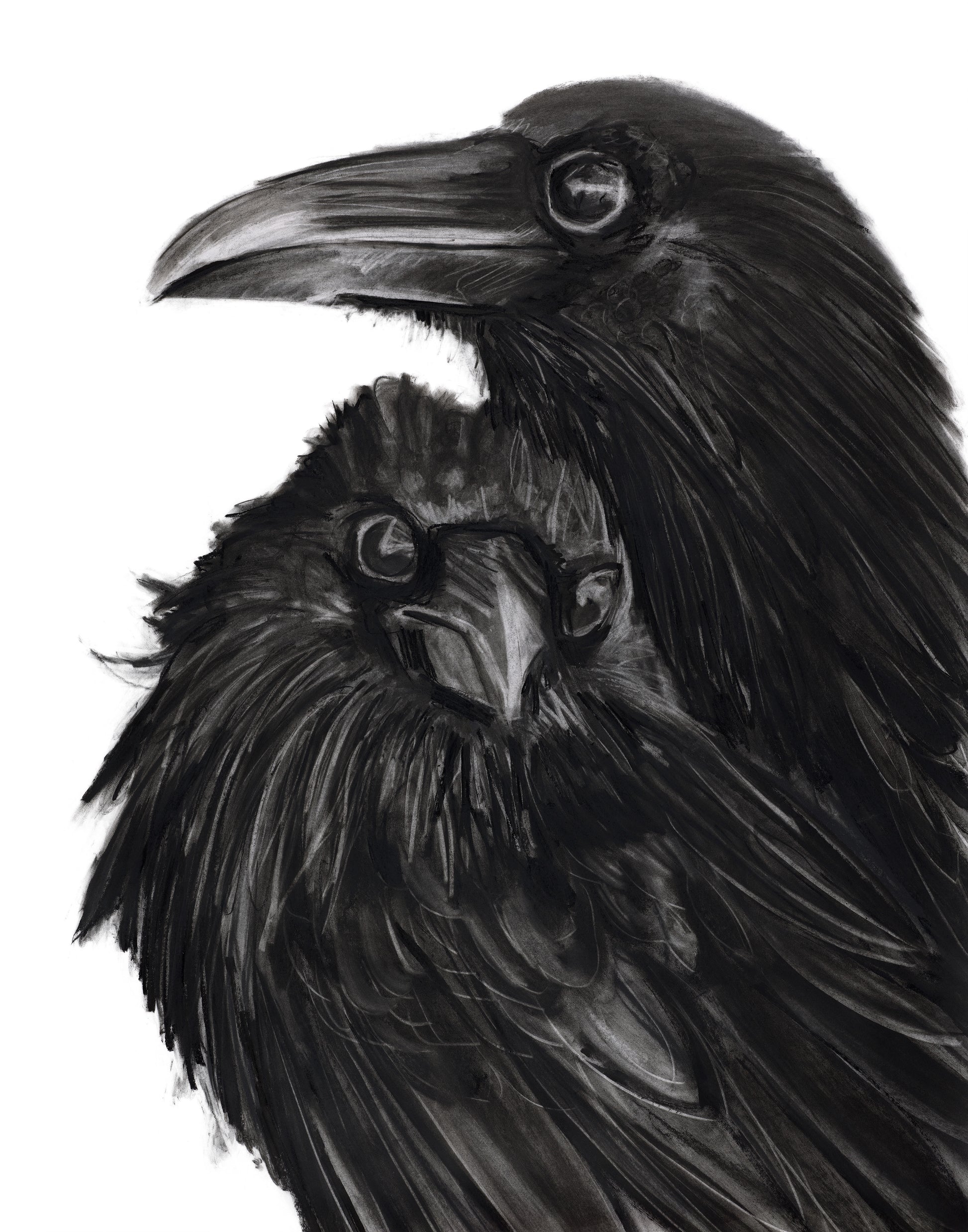 Fine Art Print image expertly captured from the original charcoal drawing "Charcoal Raven Pair"
